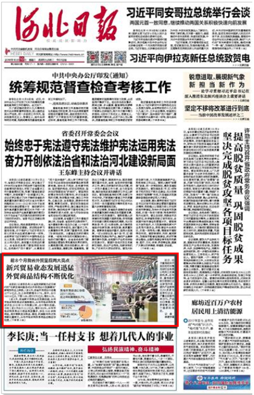 此新聞的刊登是對公司外貿業務的肯定,公司不斷加大技改投入,加快產品創新和結構調整,在產品品質上得到更大提升,讓外貿業務得到更大的優化。堅持以“集團化”發展戰略為指導,實施“人才、市場 、高科技、品牌、有效管理”五大戰略措施,創造新的優勢!為我省的外貿業務作出更大貢獻!