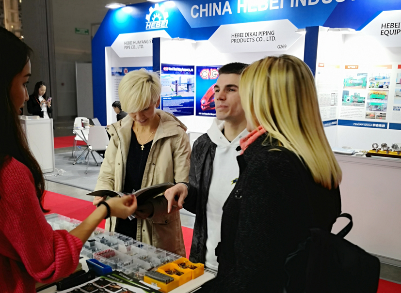 參展商到青龍劍展廳前咨詢產(chǎn)品詳情,本次展會(huì)由莫斯科大學(xué)博士后、中國(guó)最美志愿者徐琛全程翻譯。