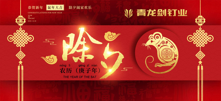 歲序常易,華章日新。當(dāng)時(shí)光穿越年輪,邁向2020新春佳節(jié),中華大地因納其盛世靈氣而芳澤毓秀,在這個充滿激情與期望的時(shí)刻,青龍劍釘業(yè)全體人員向所有關(guān)心關(guān)愛青龍劍公司發(fā)展的社會各界同仁、全國的經(jīng)銷商和用戶朋友們致以親切的節(jié)日問候和誠摯的新春祝福!