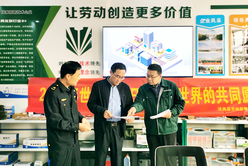 今年10月14日是第54屆世界標(biāo)準(zhǔn)日,主題為“美好世界的共同愿景”。為進(jìn)一步推廣標(biāo)準(zhǔn)化理念,提高標(biāo)準(zhǔn)化意識,提升標(biāo)準(zhǔn)化總體水平,深入推進(jìn)標(biāo)準(zhǔn)化戰(zhàn)略,10月12日,隆堯縣市場監(jiān)督管理局副局長張彥國給青龍劍公司送來釘類產(chǎn)品國家標(biāo)準(zhǔn)。