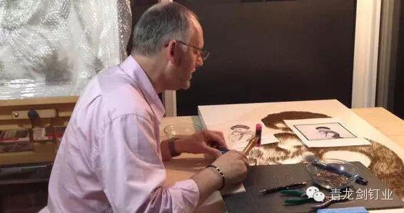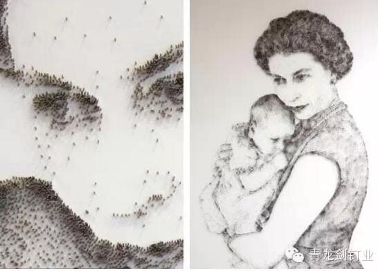 英國(guó)沃靈頓市的一名52歲的藝術(shù)家用錘子和釘子制作出了一幅幅美麗的名人肖像,其中包括瑪麗蓮·夢(mèng)露、“披頭士”,甚至是英國(guó)女王。