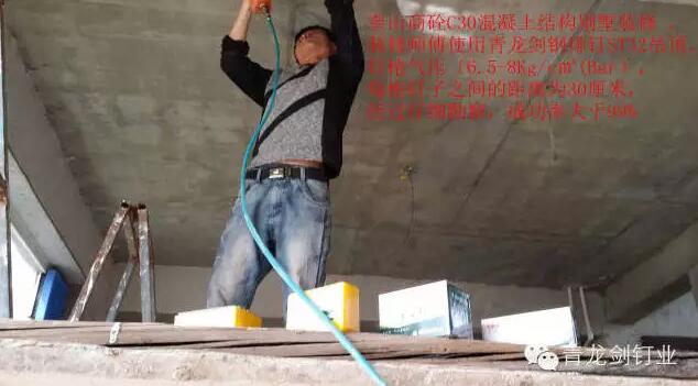 近期青龍劍釘業(yè)技術(shù)人員和銷售人員對(duì)青龍劍產(chǎn)品終端用戶進(jìn)行了走訪調(diào)研。 調(diào)研結(jié)果如下: 裝修工程隊(duì)使用青龍劍鋼排釘ST32對(duì)使用奎山商砼C30混凝土結(jié)構(gòu)的別墅進(jìn)行裝修吊頂 。(C[詳情] 2016-06-22 12:29:17